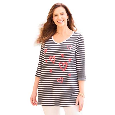 Plus Size Women's V-Neck Swing Tunic by Catherines in Black Hearts (Size 3X)